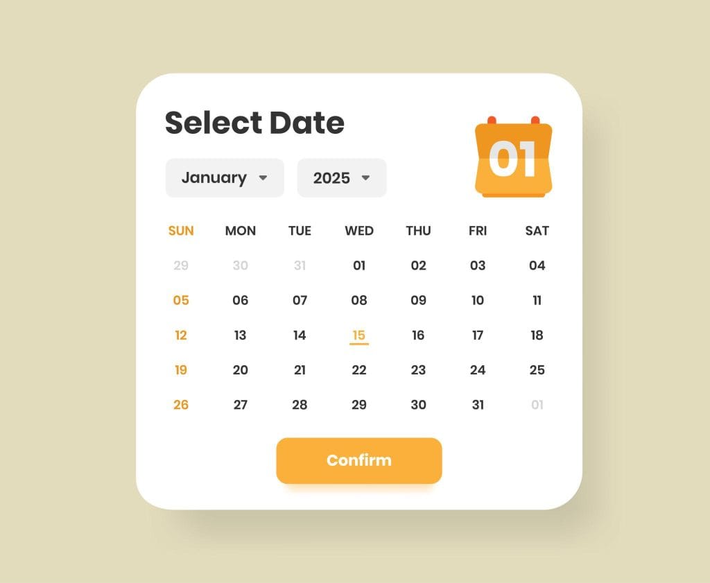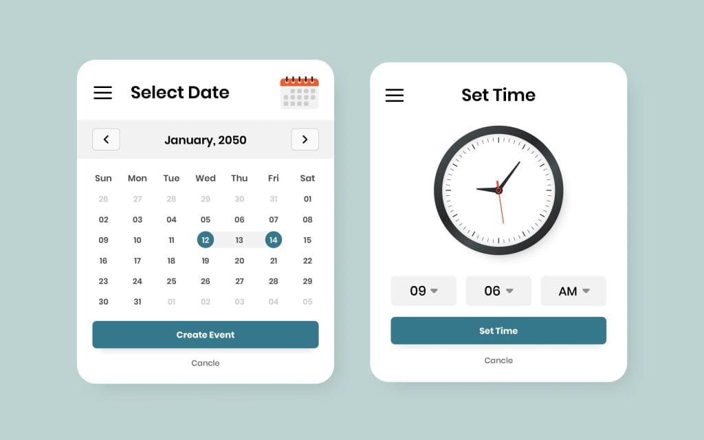 - Big calendar + time selection